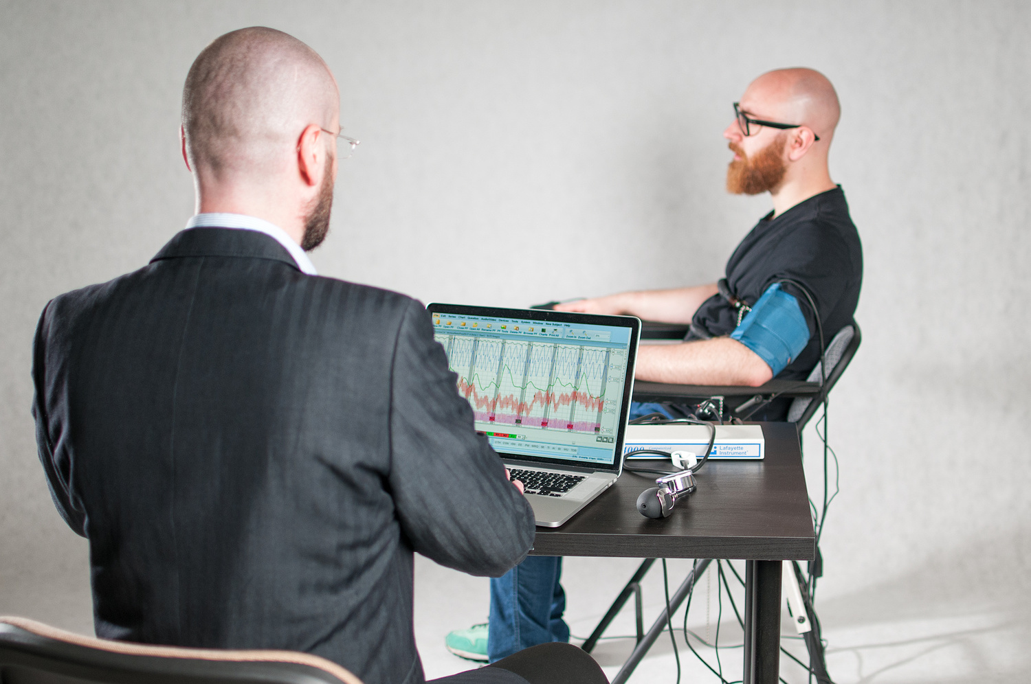 Сертифицированное оборудование, фиксирующее все физиологические показатели (дыхание, давление, тремор и т.д.).