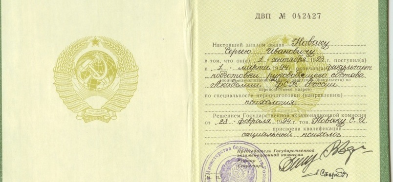 Высшая школа КГБ СССР (правоведение), Академия ФСК России (социальная психология), Институт криминалистики ФСБ России.